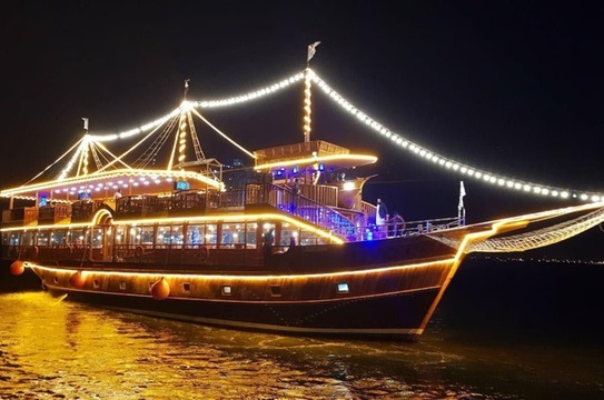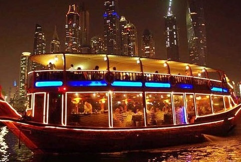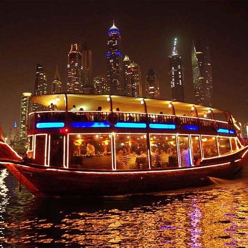 Enjoy a luxurious Dubai Dhow Cruise Dinner Creek on the banks of the Dubai Water Canal on an existing dhow. This evening visit shows you the beauty of Dubai at night and makes you feel in Arabic traditions from delightful cuisine to calming music.